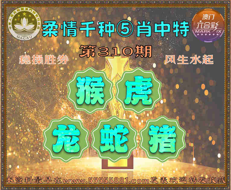 310期: 👛『柔情千种』 👛⑤肖中特👛【猴..龙.蛇.猪】开:虎16